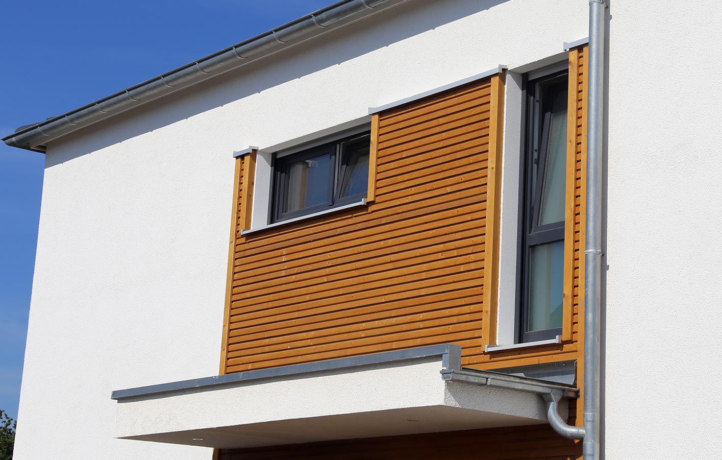 Holz Dietel, Fachmann für die Region Bayreuth: „Eine sehr starke Wirkung bei der Fassadengestaltung erzielt man mit der Wahl der Materialien bzw. dem Materialmix, der interessante Kontraste erlaubt. Sehr edel wirkt etwa eine mit Holz abgesetzte Klinker-Fassade. Holz ist durch seine wohnliche und warme Ausstrahlung generell ein sehr beliebtes Gestaltungselement für die Hausfassade. Das natürliche Material ist zudem langlebig und beständig. Dafür ist allerdings eine konsequente Pflege erforderlich.“