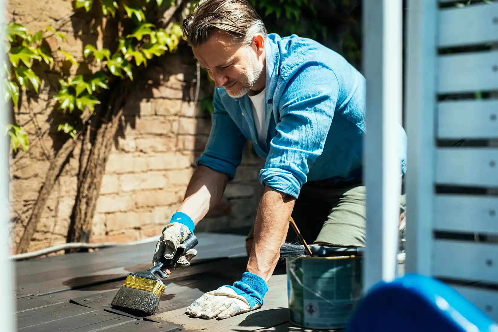 „Gut vorbereitet ist halb geschützt“, empfiehlt dietel. Bevor Farbe, Öl, Wachs oder Lasur aufgetragen werden, muss das Holz sauber, trocken und glatt sein. Alte Altbeschichtungen oder Verwitterungen abschleifen, ggf. auch Nut/ Feder-Verbindungen säubern. Danach eine passende Grundierung wählen – etwa Holzgrund oder Grundieröl mit Bläueschutz. Diese Schritte helfen, dass der Schutz tief einzieht und lange hält.